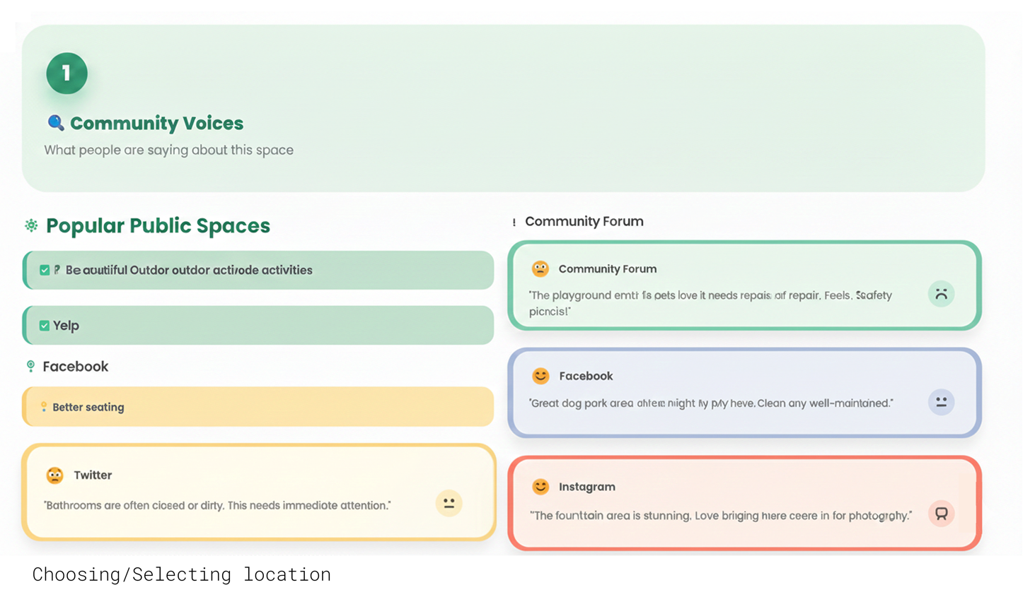 Considering that the amount of people who are missed out from the interaction and review for the stakeholder review - there is a need of using a tool that can act as the voice of the community. And that tool in todays age is: Social Media. People can comment their views/experiences/opinions on different platforms about different spaces. These comments can serve as the basis of design solutions for the designers where the users themselves direct solutions/target issues of spaces.