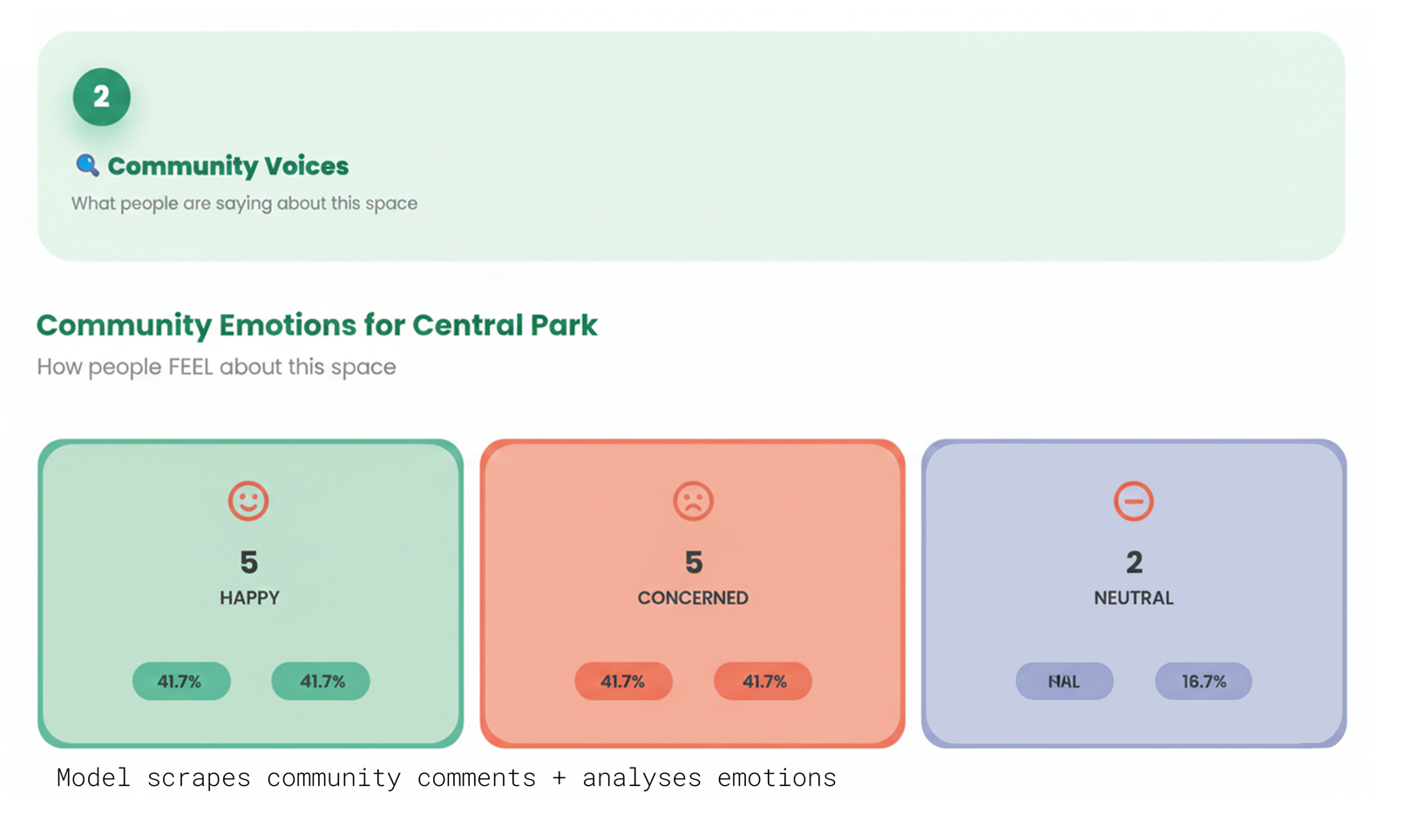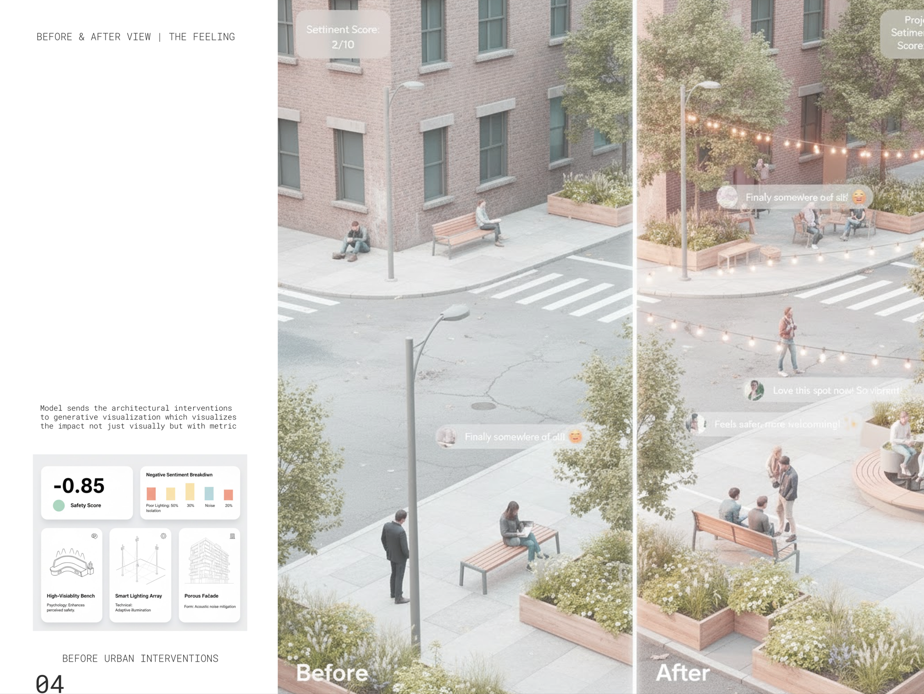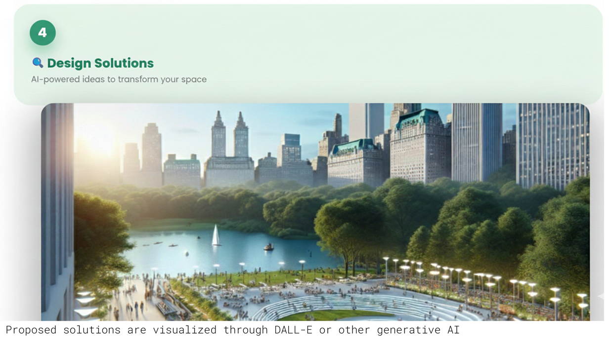 To know if the system actually works - a pipeline has been set up that will help analyze the impact of the generated solutions. Before and after of the same location is visualized through generative AI solutions that help 'see the impact' than just imagine it.