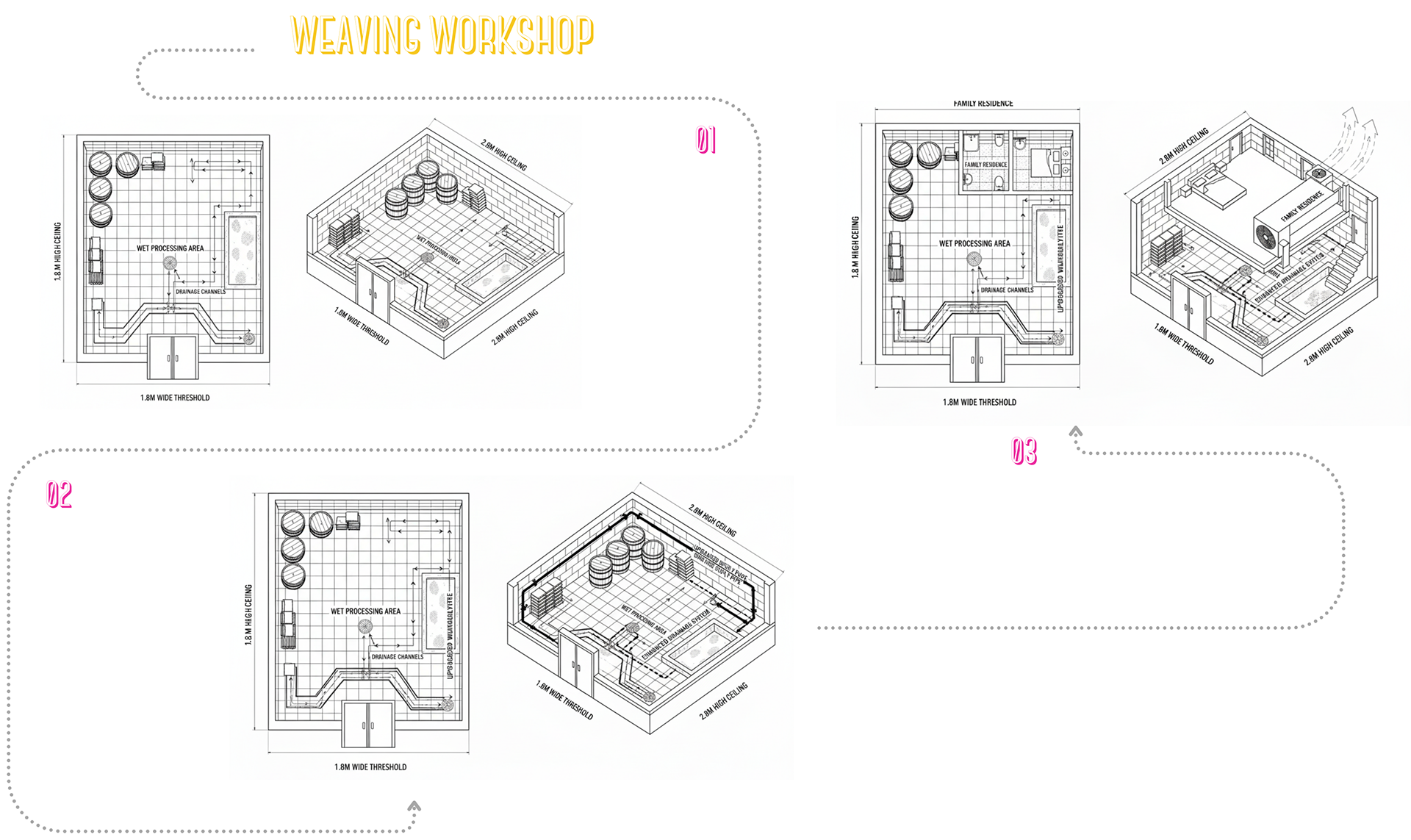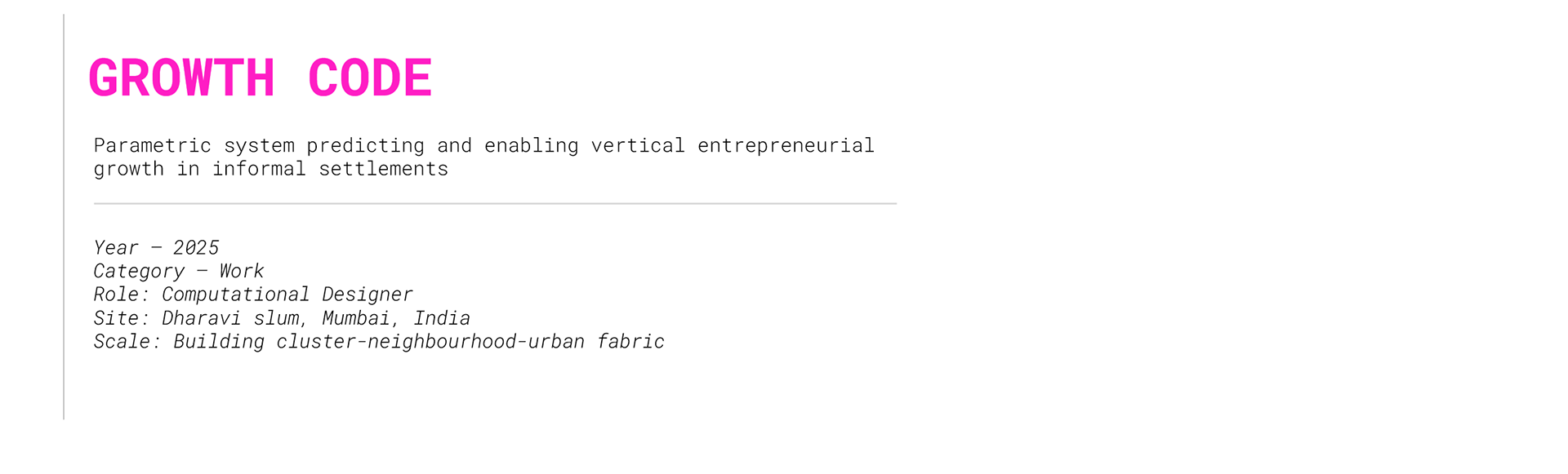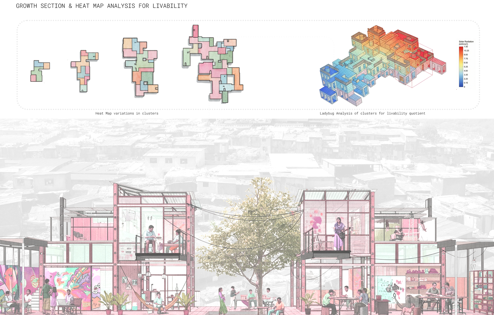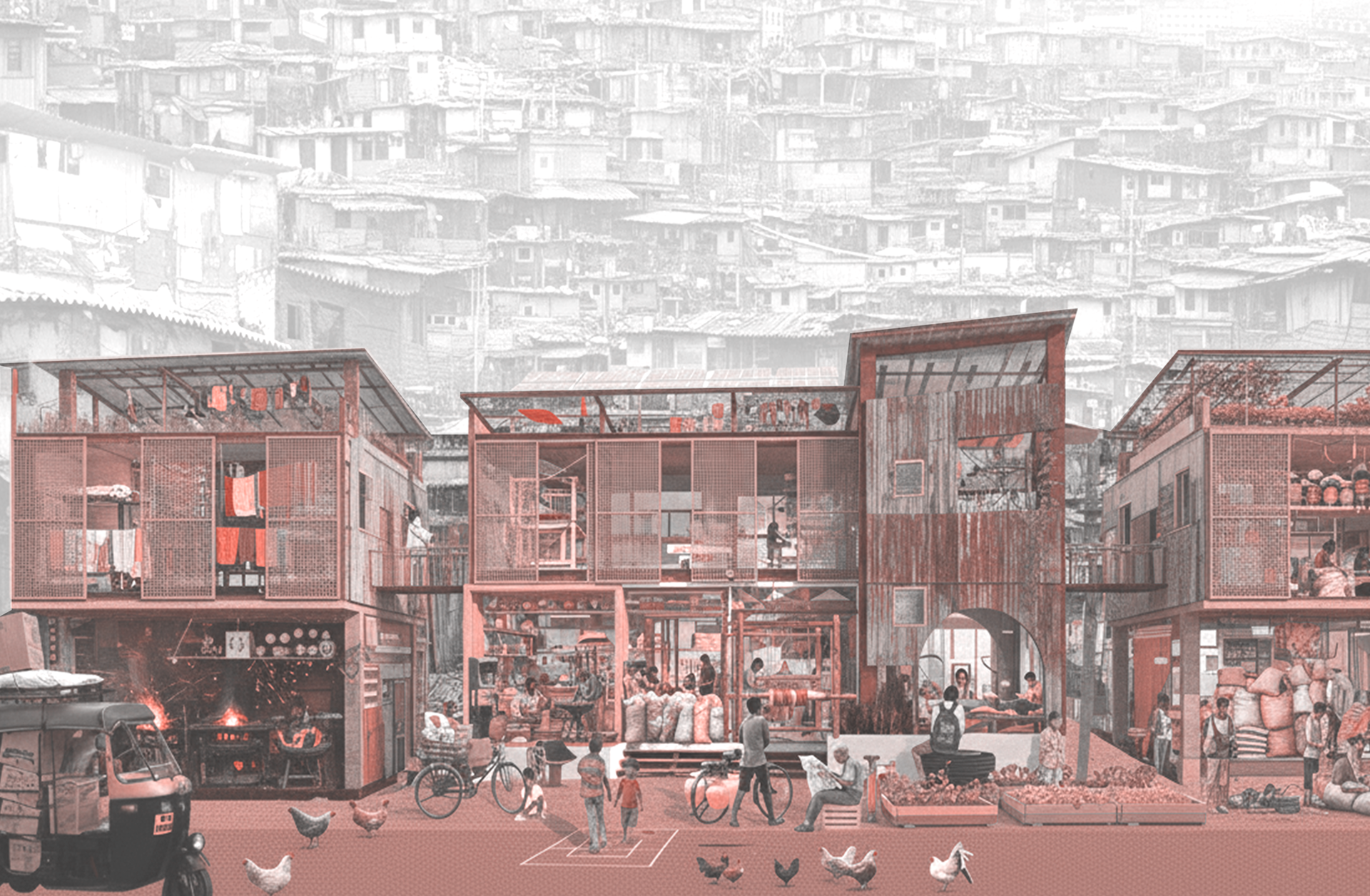 Its often assumed that growth is unpredictable in slums, but it can be understood that its not random. Everything follows a pattern. This pattern is decoded by scripting its design growth in details; for three specific business typologies: Textile-Pottery-Weaving.