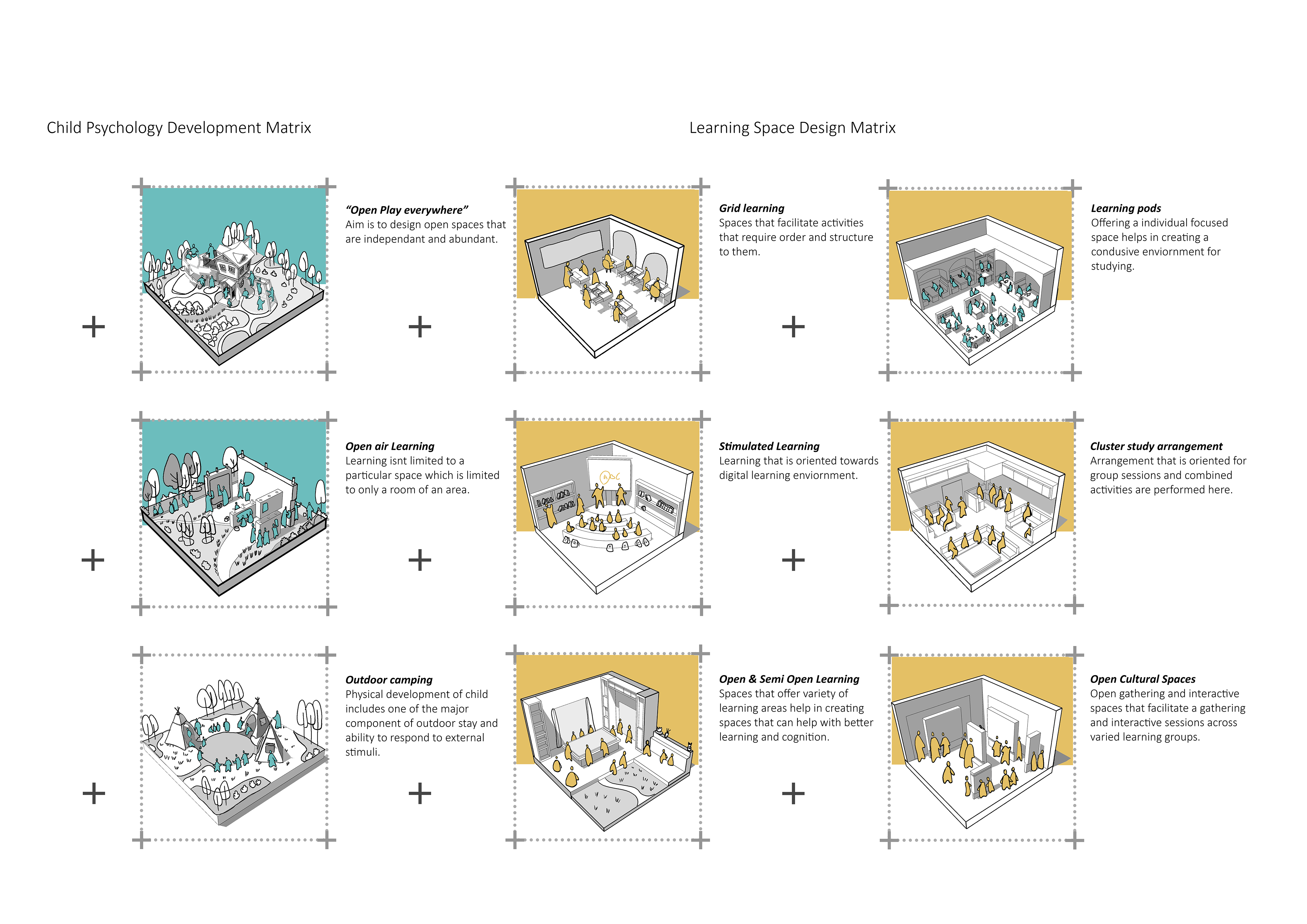 Our research moves beyond theory to the practical application of educational philosophies through architectural and psychological interventions, captured in our Design Derivation Matrix: Philosophy + Psychology + Architecture. This matrix serves as a blueprint for creating learning environments that actively support holistic child development.