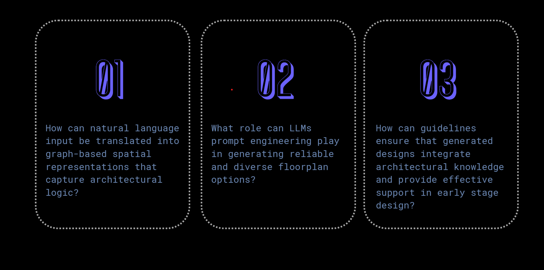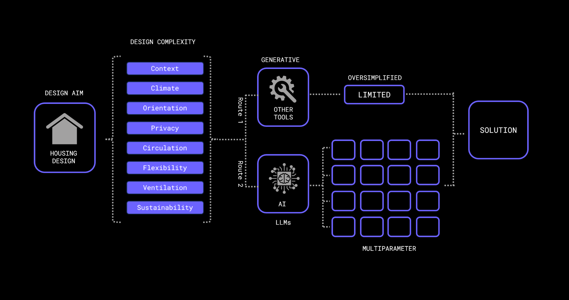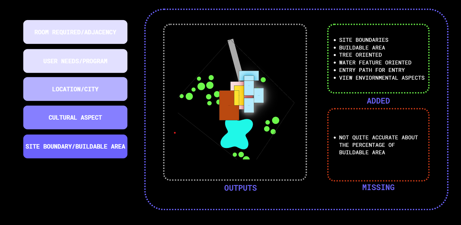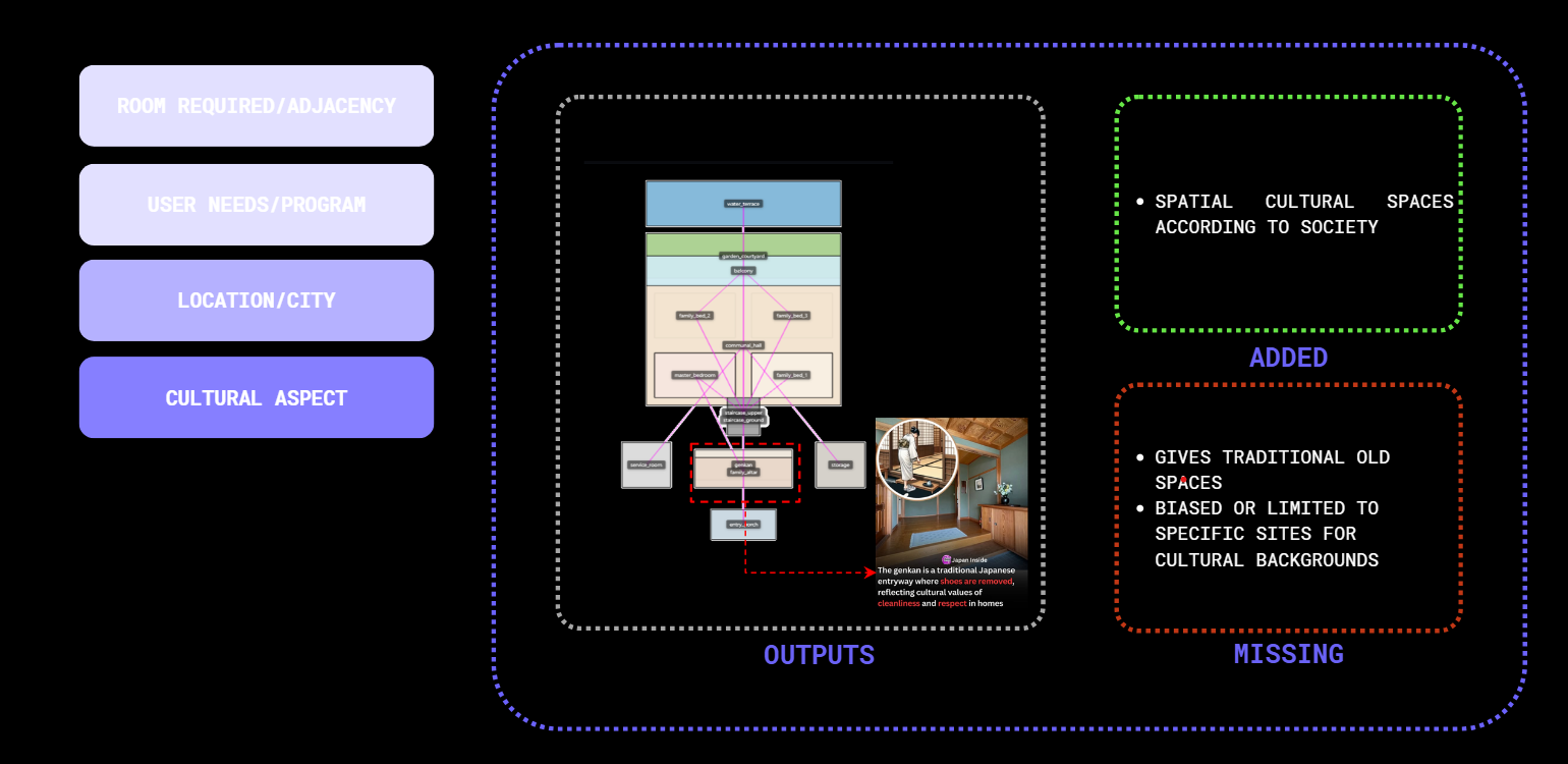 Early-stage house design is hard to formalize, and current tools don’t understand unstructured inputs. LLMs could bridge natural language and spatial logic, but no workflow exists to convert prompts into graph-based layouts. This missing link prevents LLMs from supporting conceptual design.