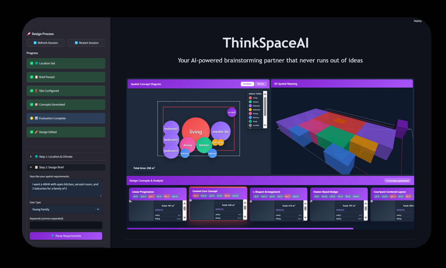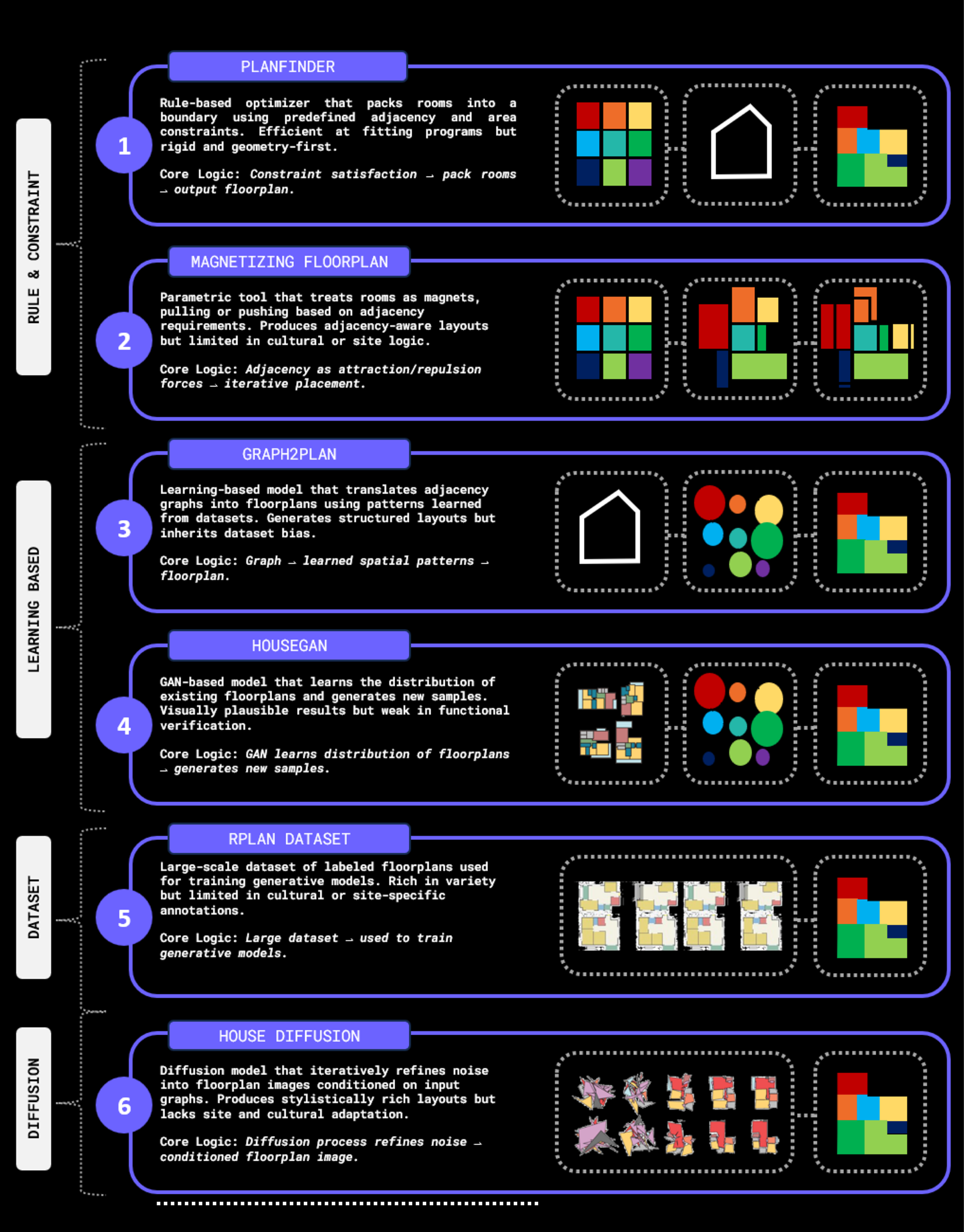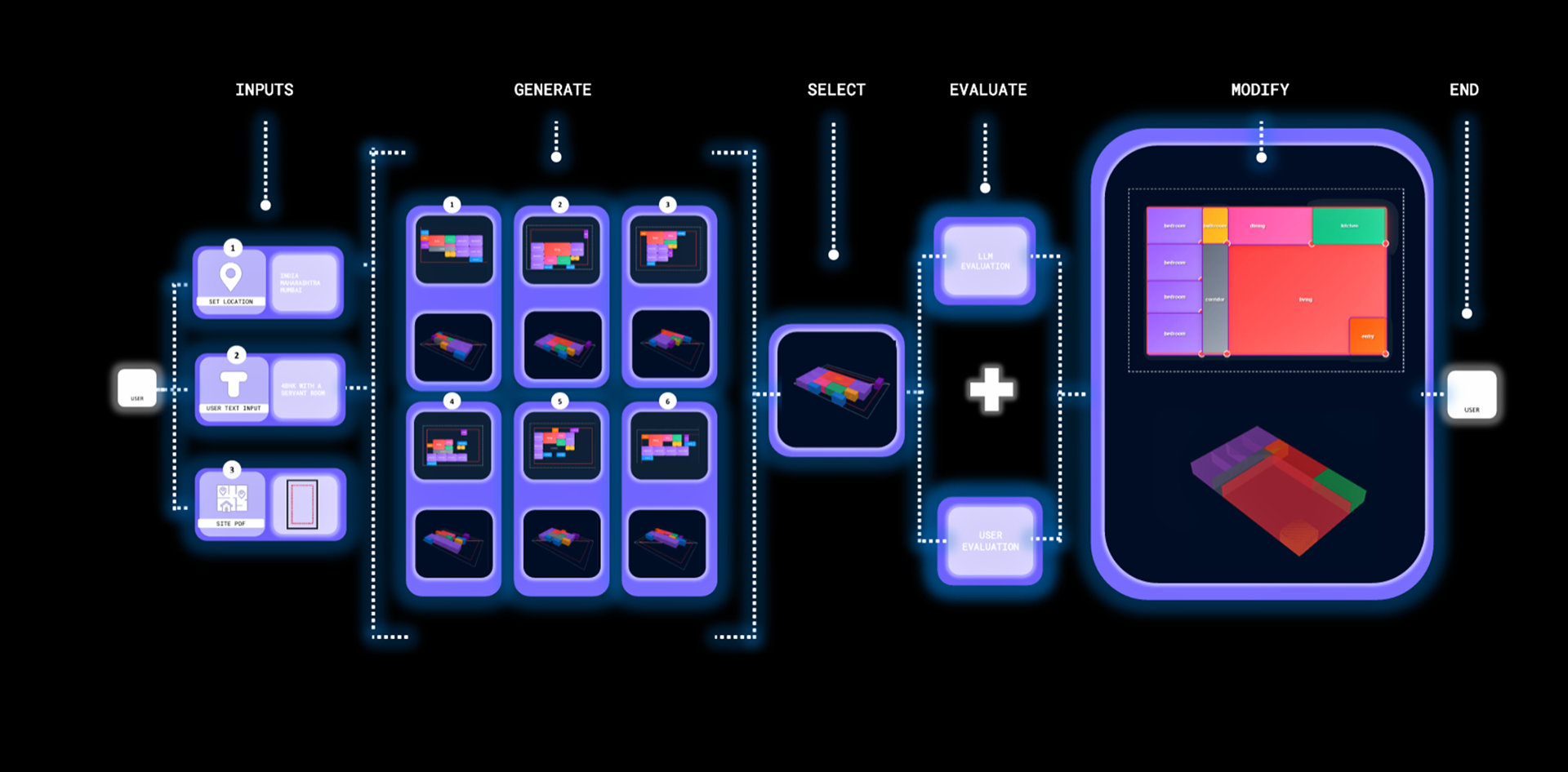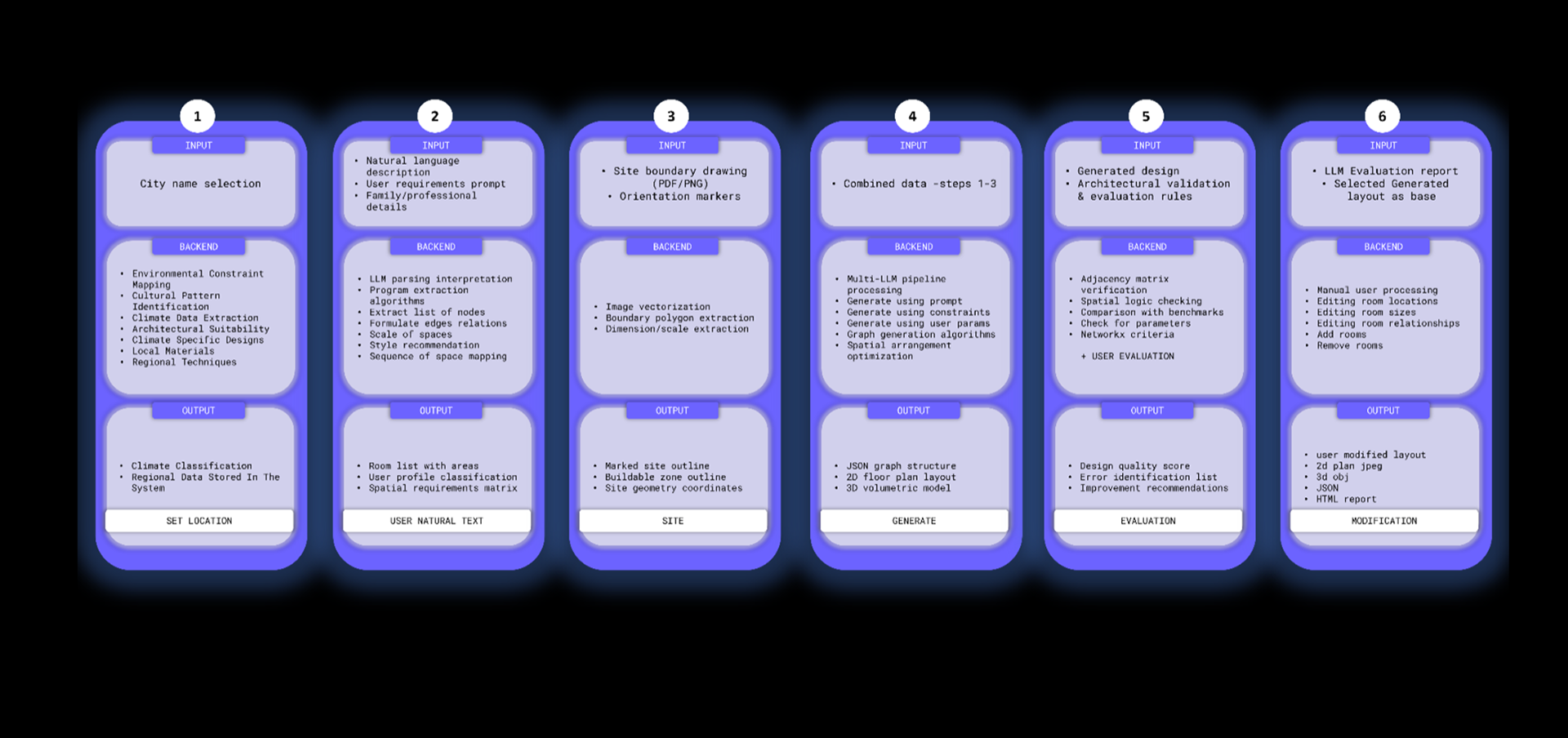 Early-stage house design is hard to formalize, and current tools don’t understand unstructured inputs. LLMs could bridge natural language and spatial logic, but no workflow exists to convert prompts into graph-based layouts. This missing link prevents LLMs from supporting conceptual design.